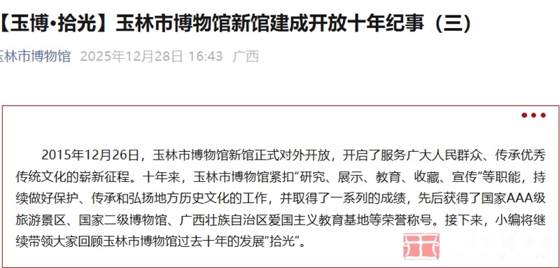 【玉博·拾光】玉林市博物馆新馆建成开放十年纪事(三)