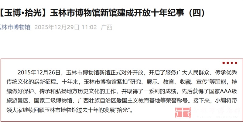 【玉博·拾光】玉林市博物馆新馆建成开放十年纪事(四)