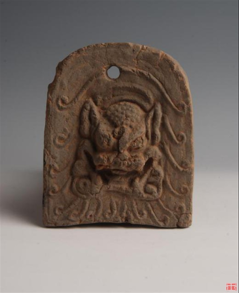 该类型砖主要用于屋檐两端与筒瓦的连接,做正脊或垂脊装饰,又叫“吞口”、脊头砖、檐头瓦、鬼瓦等等。容县出土的唐代兽面纹砖共8件,装饰图案主要为狮纹、龙首纹等。